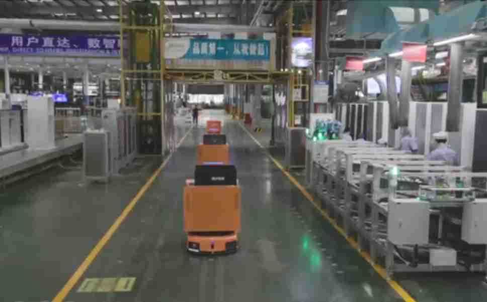 为车载冰箱物流配送打造的智能解决方案,,,,包含产中物流通过潜伏举升AMR搬运至线边,,,,产后成品物流智能仓储,,流程包含产中物流智能齐套入库,,,,线边安灯叫料AMR智能配送至线边,,,,成品入库、、、、出库,,,,通过无人堆高车机器人,,,,智能仓储管理替代人工作业管理,,,,实现更高存储、、、更高效率、、更具柔性化的解决方案。。